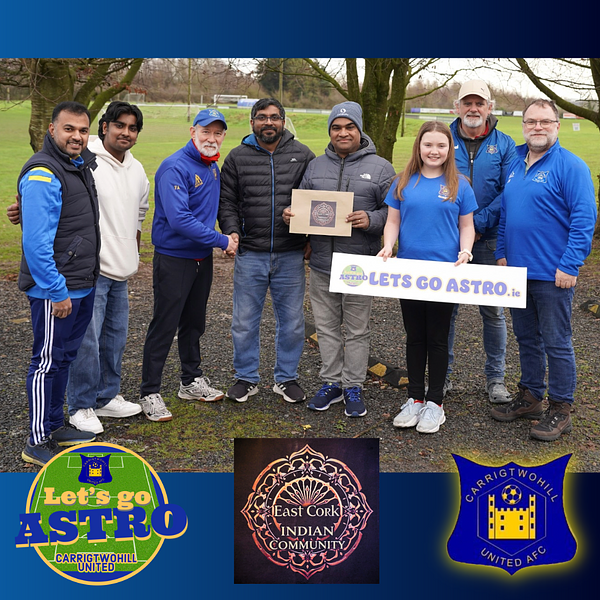 In a wonderfully spontaneous gesture, East Cork Indian Community group undertook to do fund raising dedicated to our Let's Go Astro project and have now acquired a Gold Square which will proudly bear the name of their group when the wall of sponsors is finalised later this year. The club is very grateful to the for this generous support.