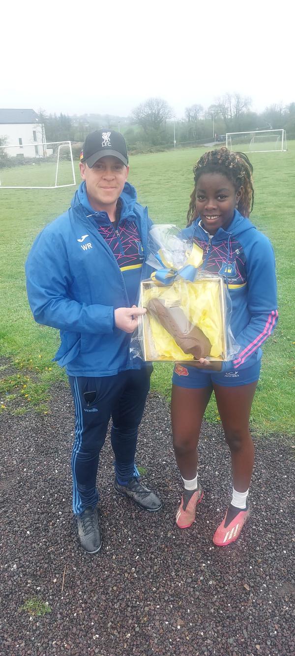 Well done to Rachel Uyi Irabor who after being disappointed by her performance in the Under-14 game against Midleton in the Cup the week previous, went on to score the winner the following week in her teams 1-0 win away to Carrigaline in the league
